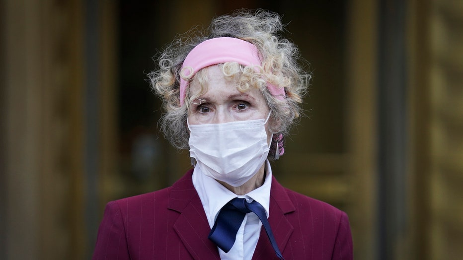 E. Jean Carroll, who says Donald Trump raped her in the 1990s, leaves the U.S. Courthouse in New York, Wednesday, Oct. 21, 2020. (AP Photo/John Minchillo)