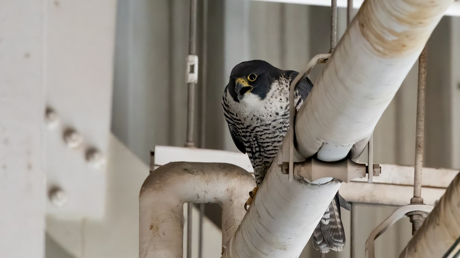 SAN FRANCISCO INTERNATIONAL AIRPORT - Two peregrine falcon chicks are with their parents again after being found inside the United Airlines hangar at San Francisco International Airport.