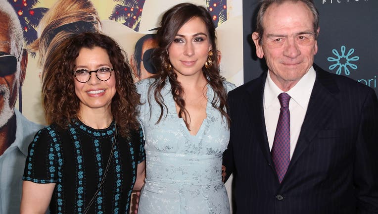 HOLLYWOOD, CA - DECEMBER 07: Actor Tommy Lee Jones poses with wife photographer Dawn Laurel-Jones (L) and his daughter Victoria Jones (C) at the premiere of Broad Green Pictures' "Just Getting Started" at ArcLight Hollywood on December 7, 2017 in Hol