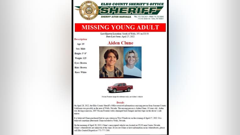 Clune was last seen in Elko County, and may have been in the area of Wells, Nevada.