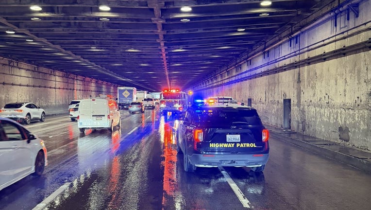 The California Highway Patrol announced on X just before 1:45 p.m. that the water main had broken on the eastbound side of the bridge, inside the Treasure Island tunnel.