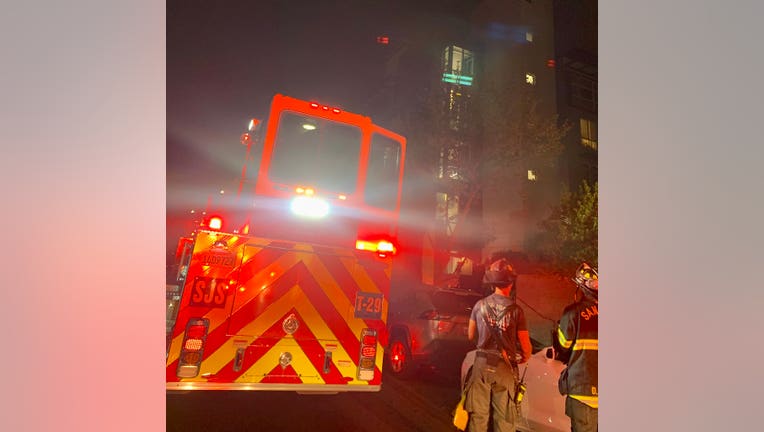 The San Jose Fire Department responded to the flooding after a municipal water pipe burst on the building's fourth floor around 7:45 p.m. at a complex on Vista Montaña.