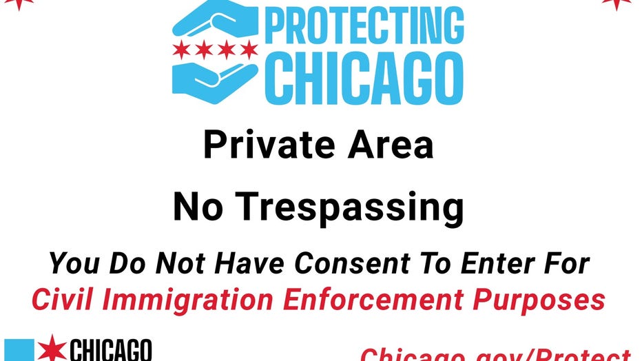 A no trespassing sign in Chicago to prevent ICE actions. Courtesy Chicago.gov