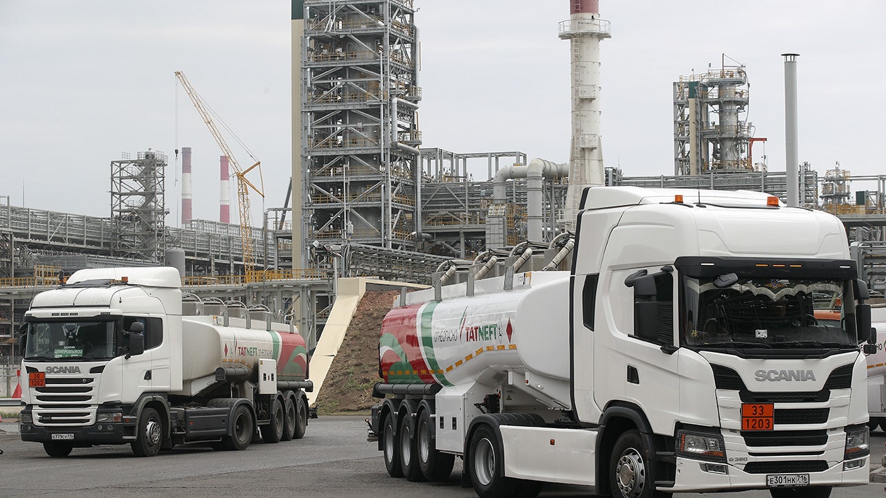 File: Tanker trucks at Tatneft's Taneco oil refining and petrochemical complex. (Photo by Yegor AleyevTASS via Getty Images)