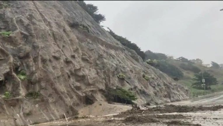 A mudslide near the Great Highway in San Francisco on Dec. 31, 2022. (KTVU FOX 2)