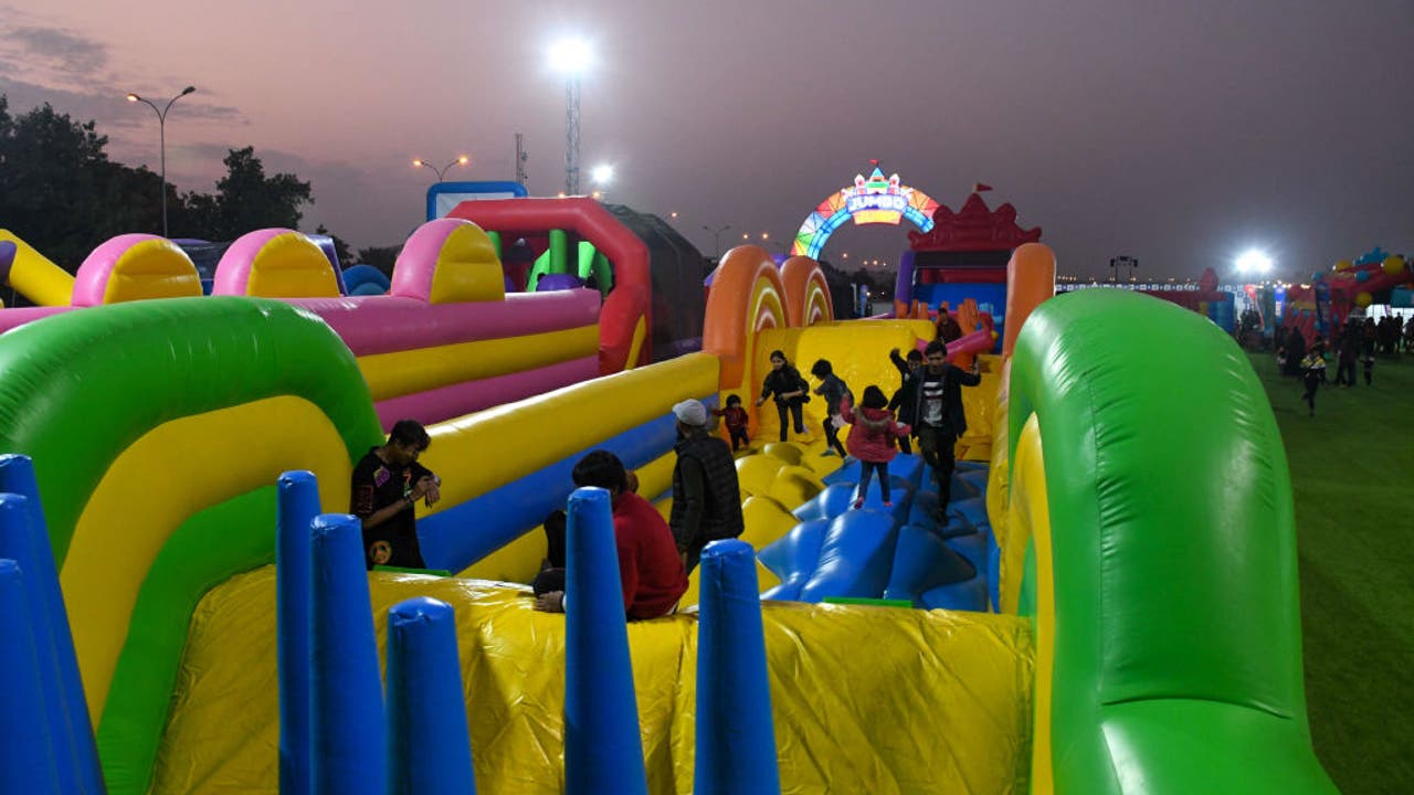 KARACHI, PAKISTAN - JANUARY 05: A general view of the world's largest jumping castle, certified by the Guinness World Records in Karachi, Pakistan on January 05, 2024. (Photo by Sabir Mazhar/Anadolu via Getty Images)