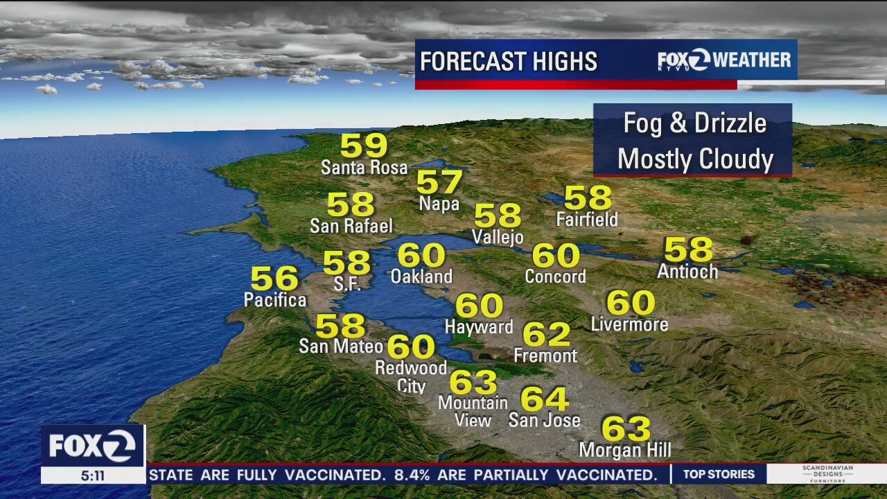 Steve Paulson says that today will be foggy and cloudy with some drizzle. Temps in the 50s.