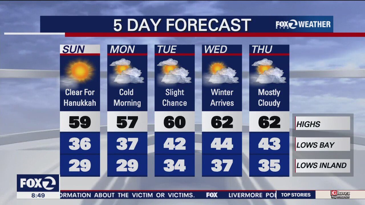 Chilly morning temperatures followed by seasonal average afternoon temperatures are expected across the Bay Area.