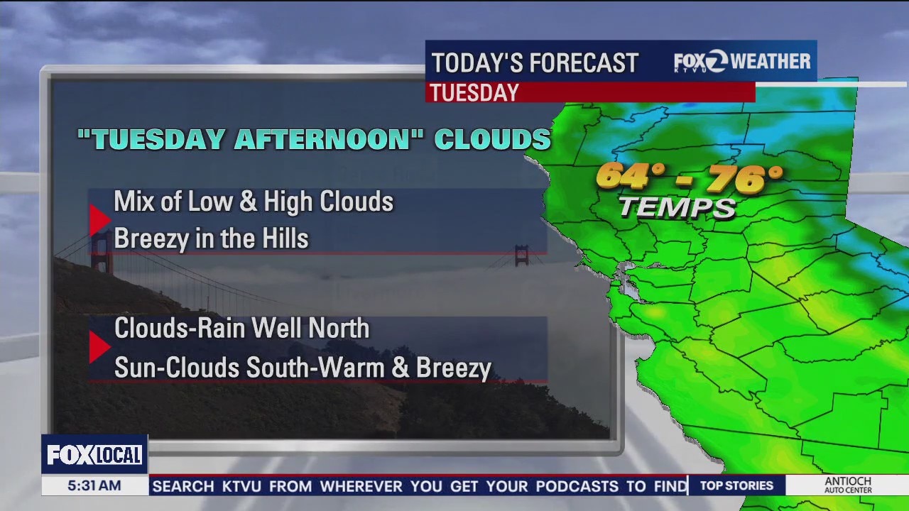 Today will see clouds and rain. Temps in the 60s and 70s.