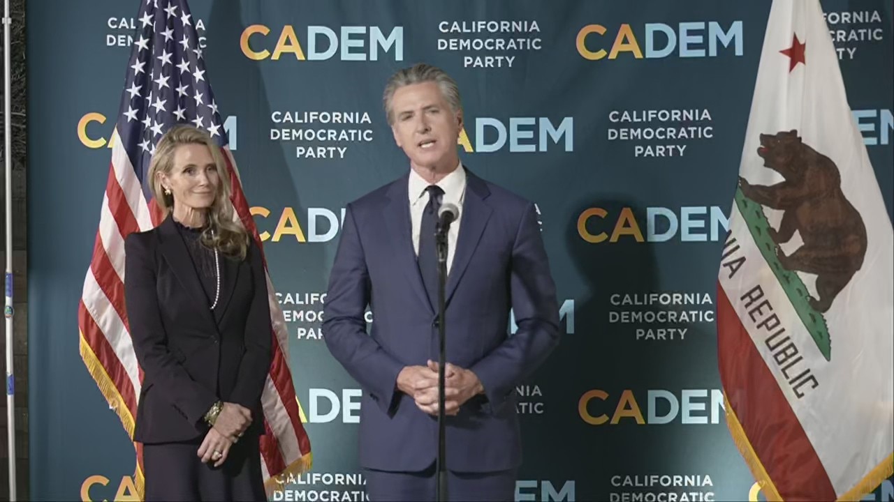 California Gov. Gavin Newsom speaks after voters pass Prop. 50