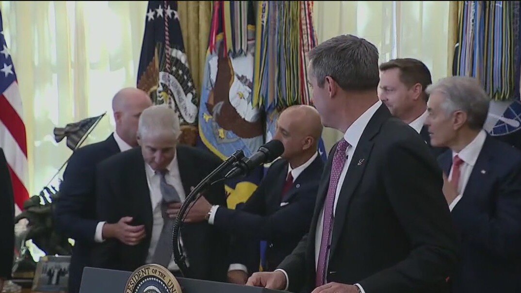 As President Trump was announcing a deal to lower the cost of popular weight-loss drugs, a drug company executive fainted in the Oval Office. The president said the executive was simply light-headed and that he's OK.