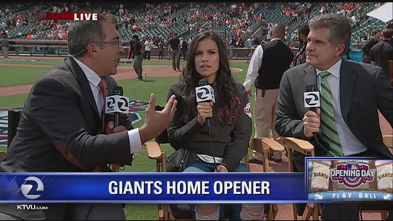The social media star is interviewed by KTVU in the moments before the home opening game of the San Francisco Giants.