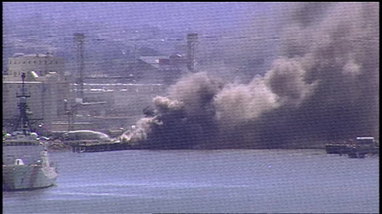 KTVU roof cam records heavy smoke from structure fire along Oakland pier