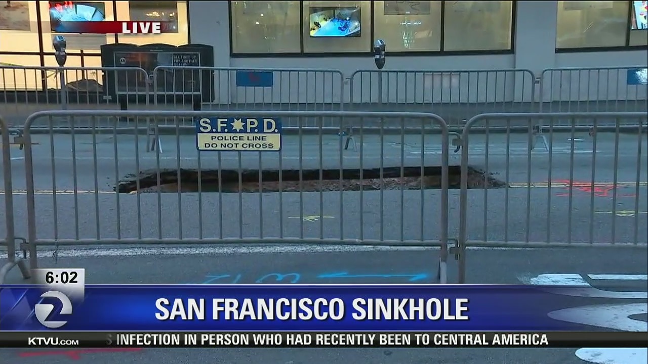 KTVU's Alex Savidge reports that sinkhole could take several days to repair at Mission and New Montgomery