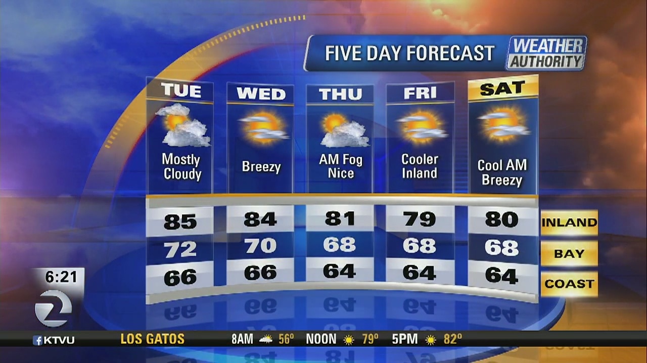 TODAY'S FORECAST: Mid 80s inland, mid 60s at coast