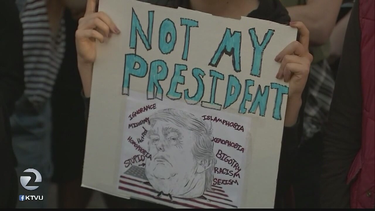Vandalism in Oakland, peaceful march in SF as anti-Trump protesters demonstrate for 2nd night