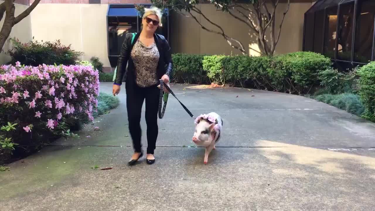 Lilou the pig comes into KTVU