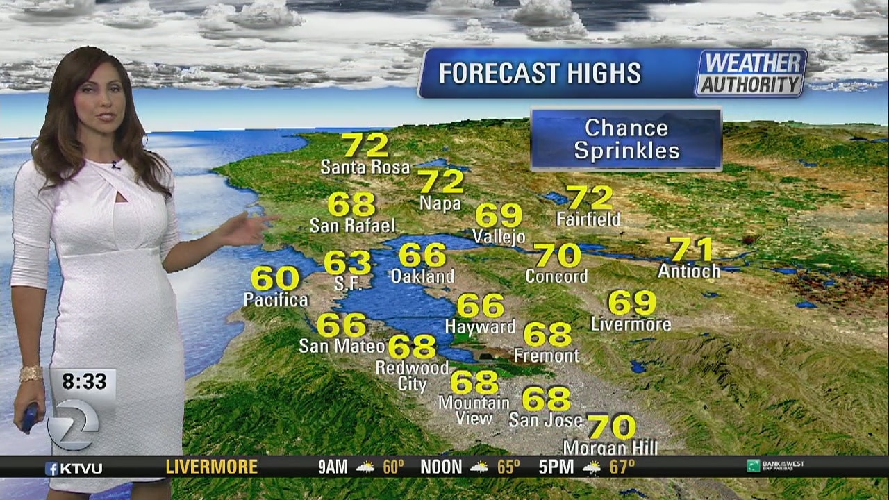 KTVU meteorologist Rosemary Orozco says it will be partly cloudy throughout the day with a chance of showers and cooler temperatures in the high 60s.