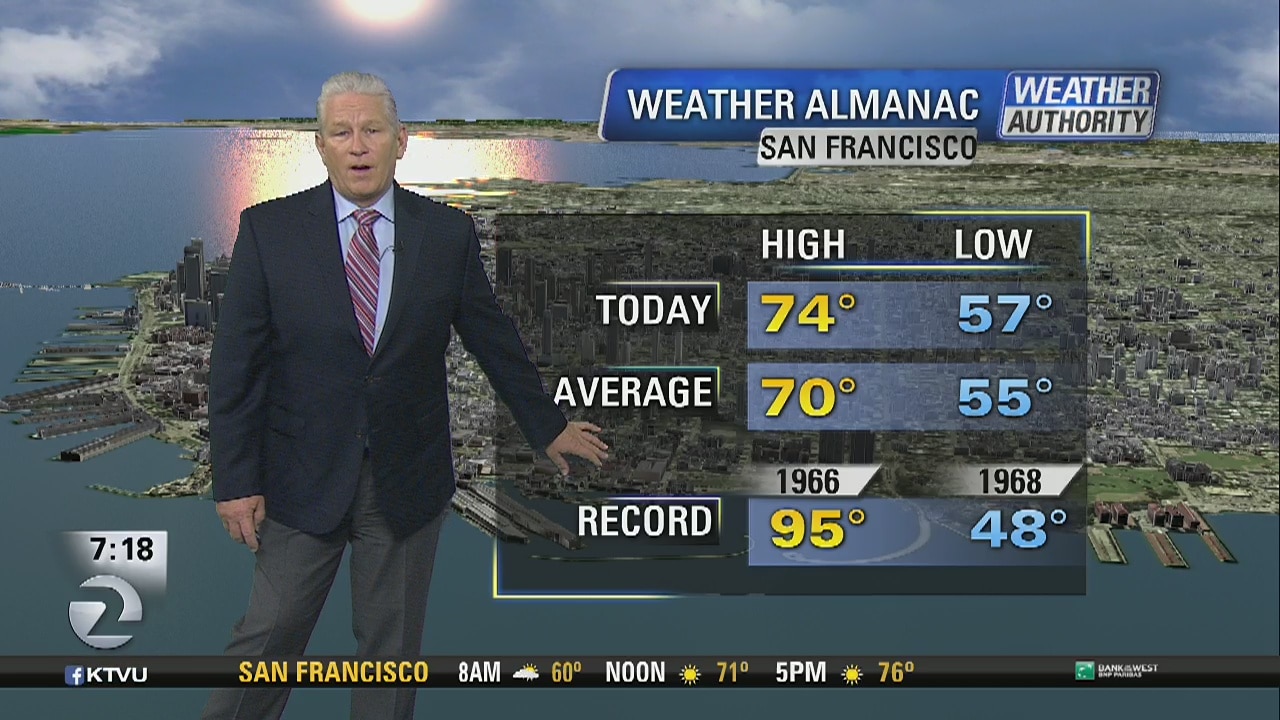 KTVU meterologist Steve Paulson said temperatures today will be cooler than yesterday especially near the coast. The reason? A more pronounced onshore flow leading to the ocean-cooled air moving into our region. Inland spots will only see slight cooling.