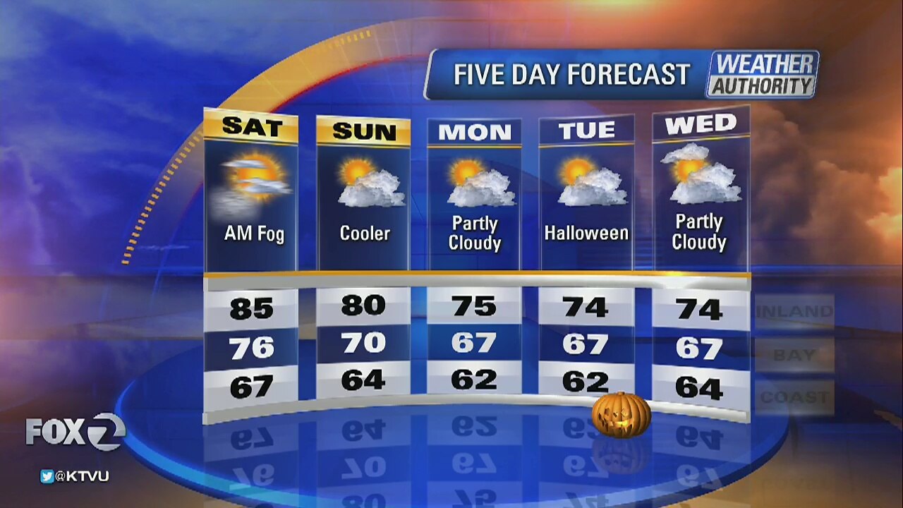 Cooler temperatures into Saturday and through the weekend. There's some rain in the distant forecast, but Halloween will be all clear.