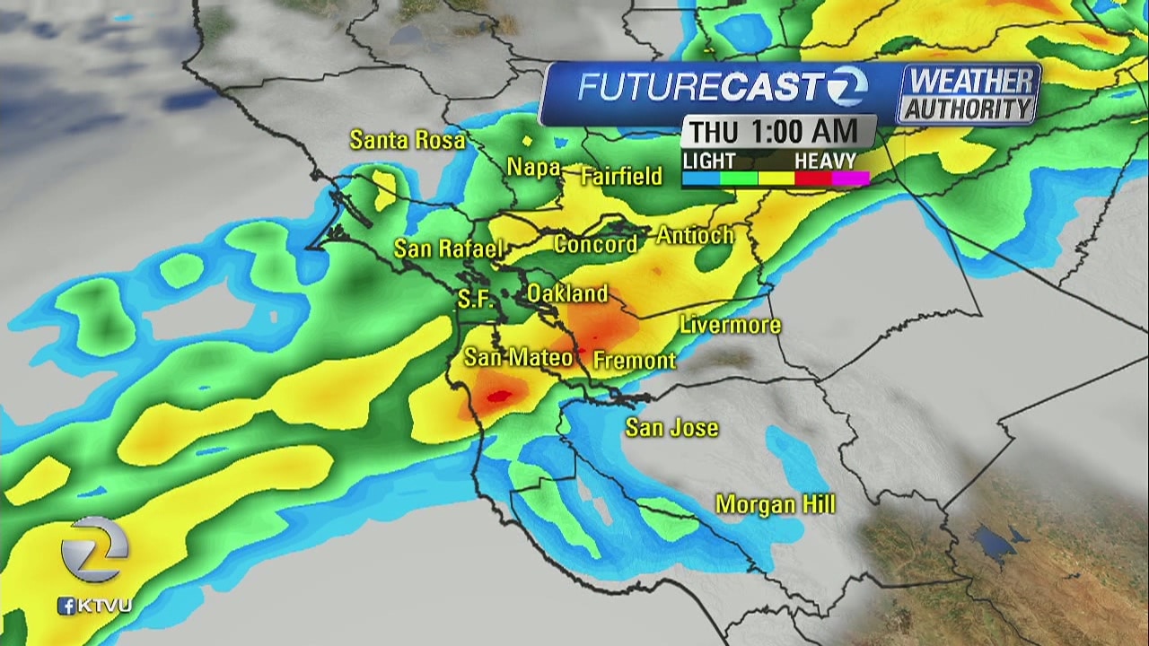 Flash flood watch in the North Bay through 3:00 a.m., and heavy rain expected throughout the Bay between 2:00 and 4:00 a.m. will make for a wet morning commute, especially in the South Bay.