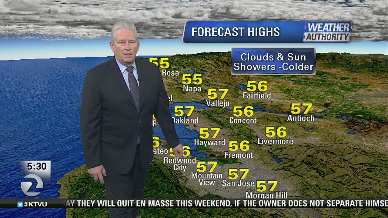 KTVU meteorologist Steve Paulson says it will be colder today with highs only in the 50s and the possibility of showers.