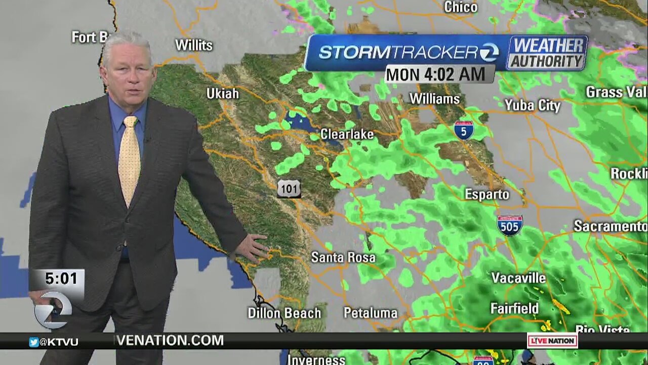 KTVU meteorologist Steve Paulson says it will be rainy today with highs in the 50s, followed by a break on Tuesday and a stronger storm on Wednesday.
