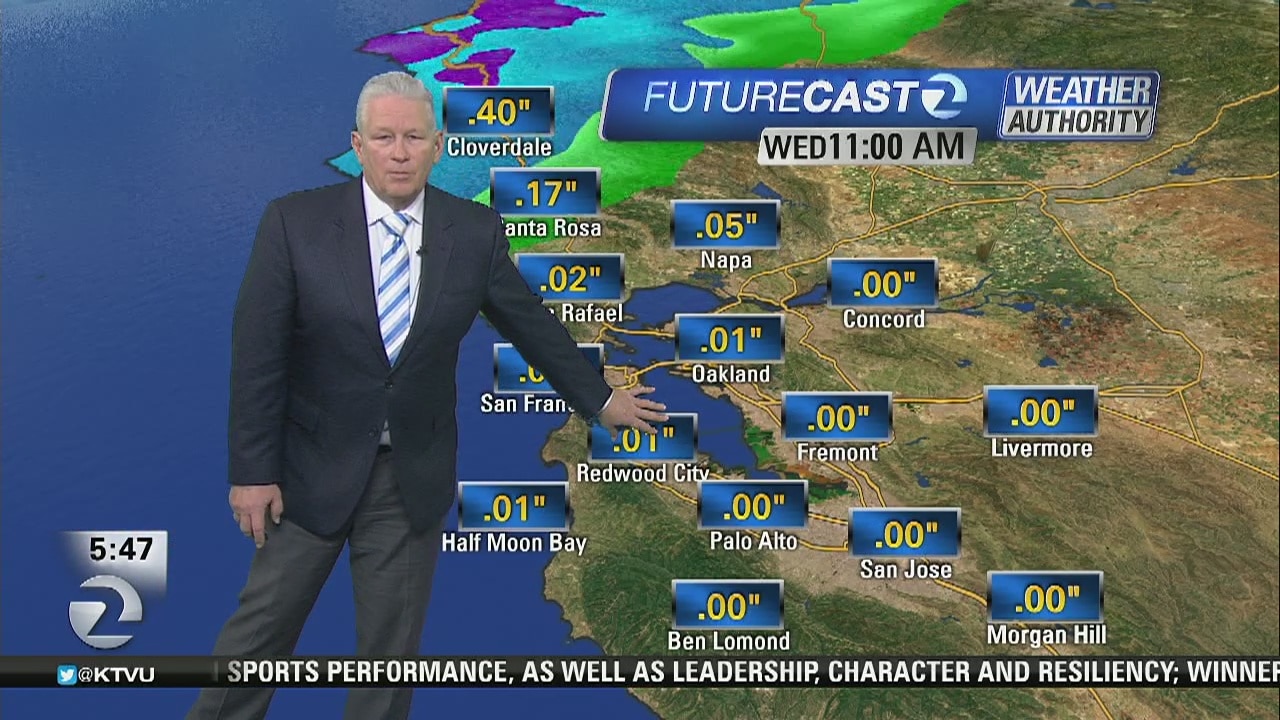 KTVU meteorologist Steve Paulson says today will be partly sunny with rain developing for Wednesday and Thursday. The weekend should be dry and clear.