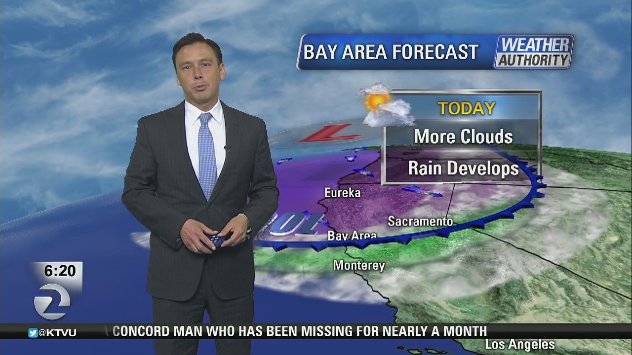 KTVU meteorologist Mark Tamayo says the day will be partly cloudy and rain will move in between 3 p.m. to 6 p.m. There will be a winter storm advisory for the Sierra