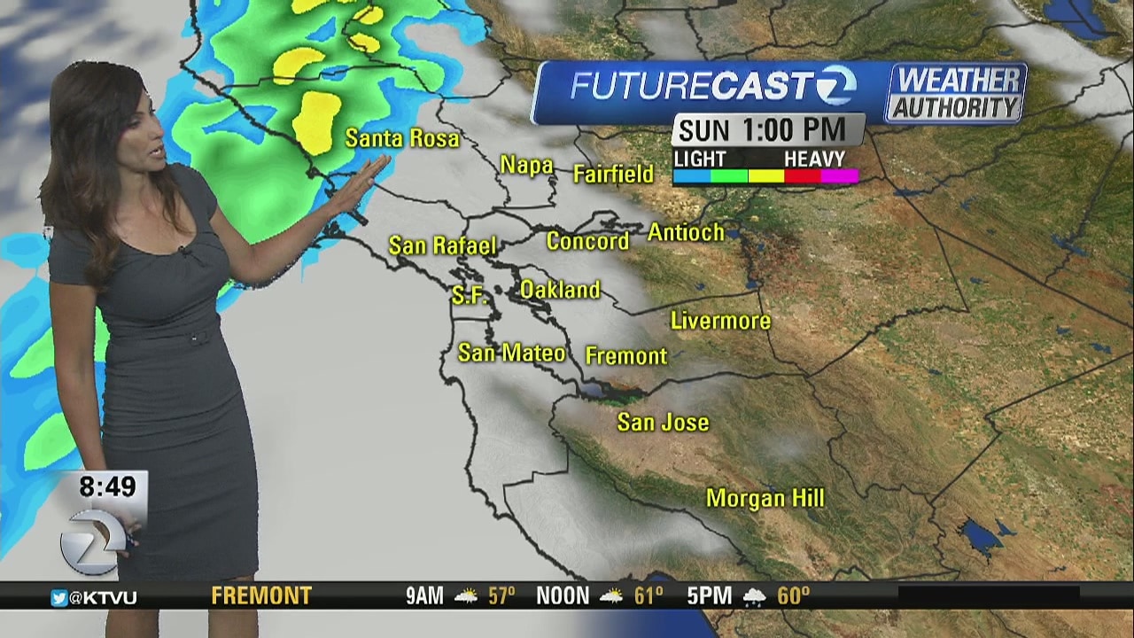 Expect the clouds to thicken up shortly after lunchtime with rainfall beginning in the latter half of the afternoon. Showers will last through Monday morning.