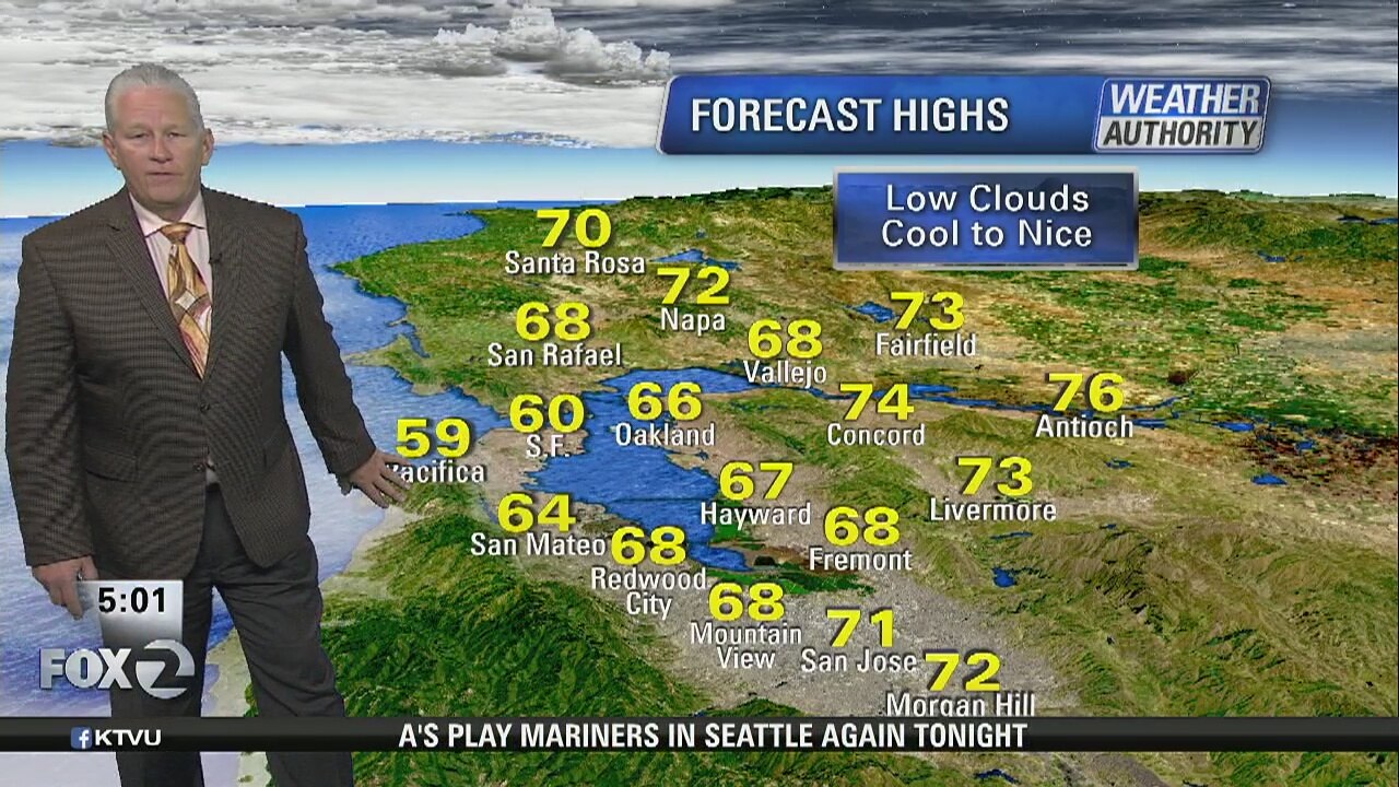 KTVU meteorologist Steve Paulson says today will see low clouds and be cooler with temps in the 60s and low 70s
