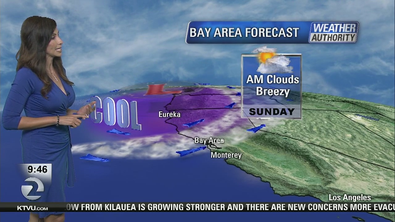 Some unseasonably cool weather to close out the weekend. Inland temperatures hang in the low 70s, mid 60s around the bay and high 50s on parts of the coast.