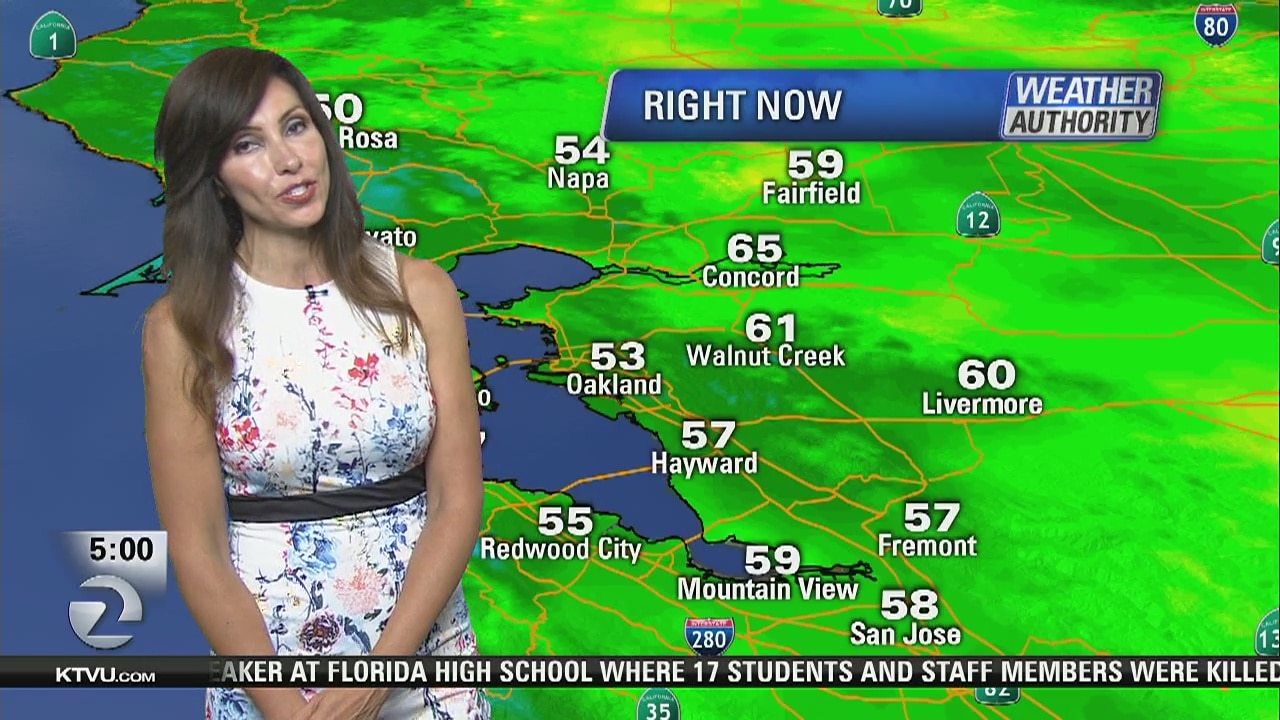 KTVU meteorologist Rosemary Orozco says today will be about 5 or 10 degrees cooler than Sunday with temps in the 60s and 70s.
