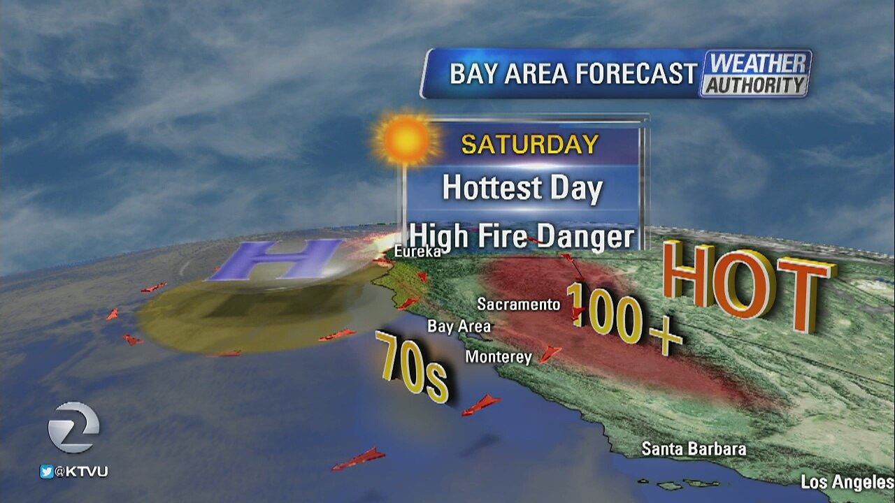 Expect some triple digit heat throughout inland areas. Red flag warning is in effect from late Friday night until Saturday morning as high winds are expected in higher elevations of the North Bay.