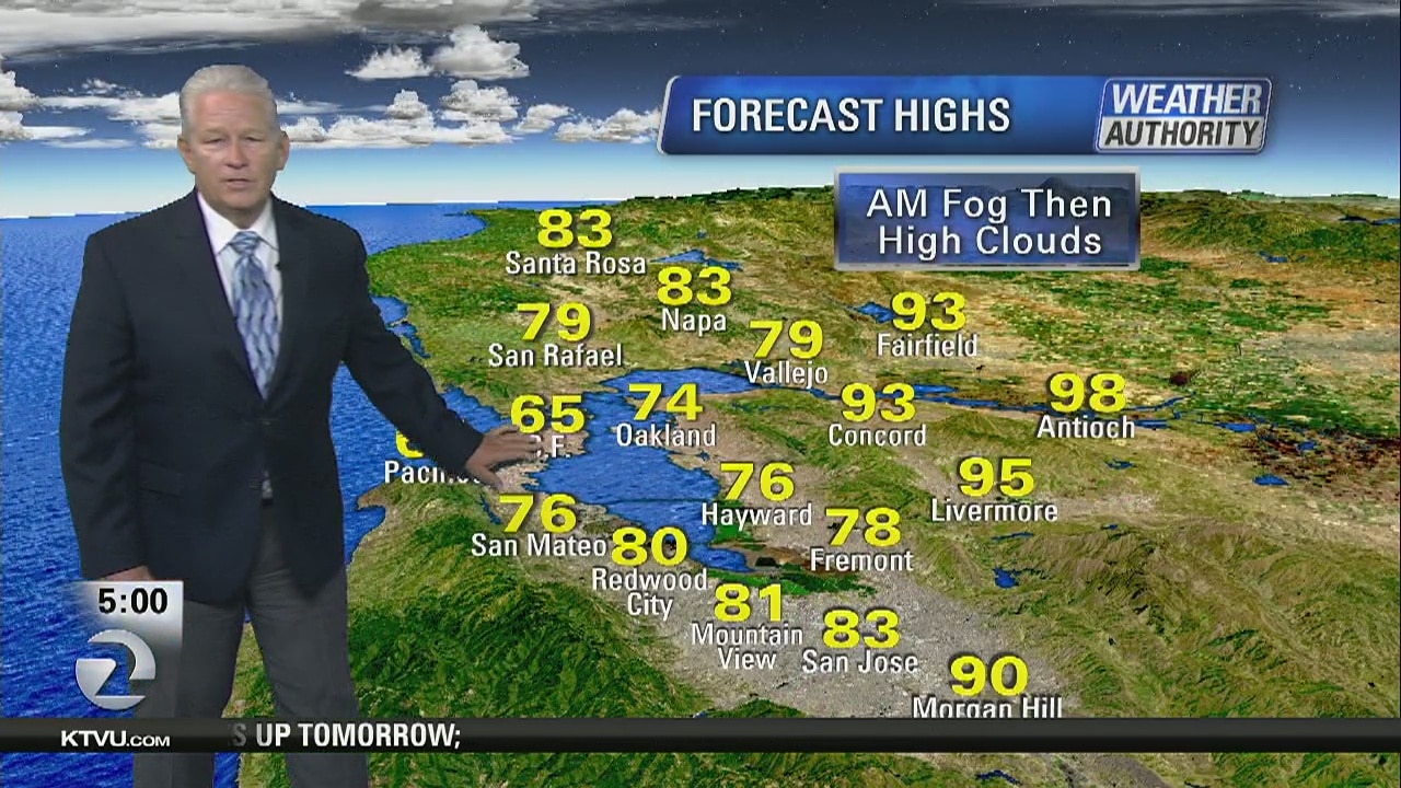 KTVU meteorologist Steve Paulson says temps will be 60s at the coast and as high as 98 degrees in Antioch.