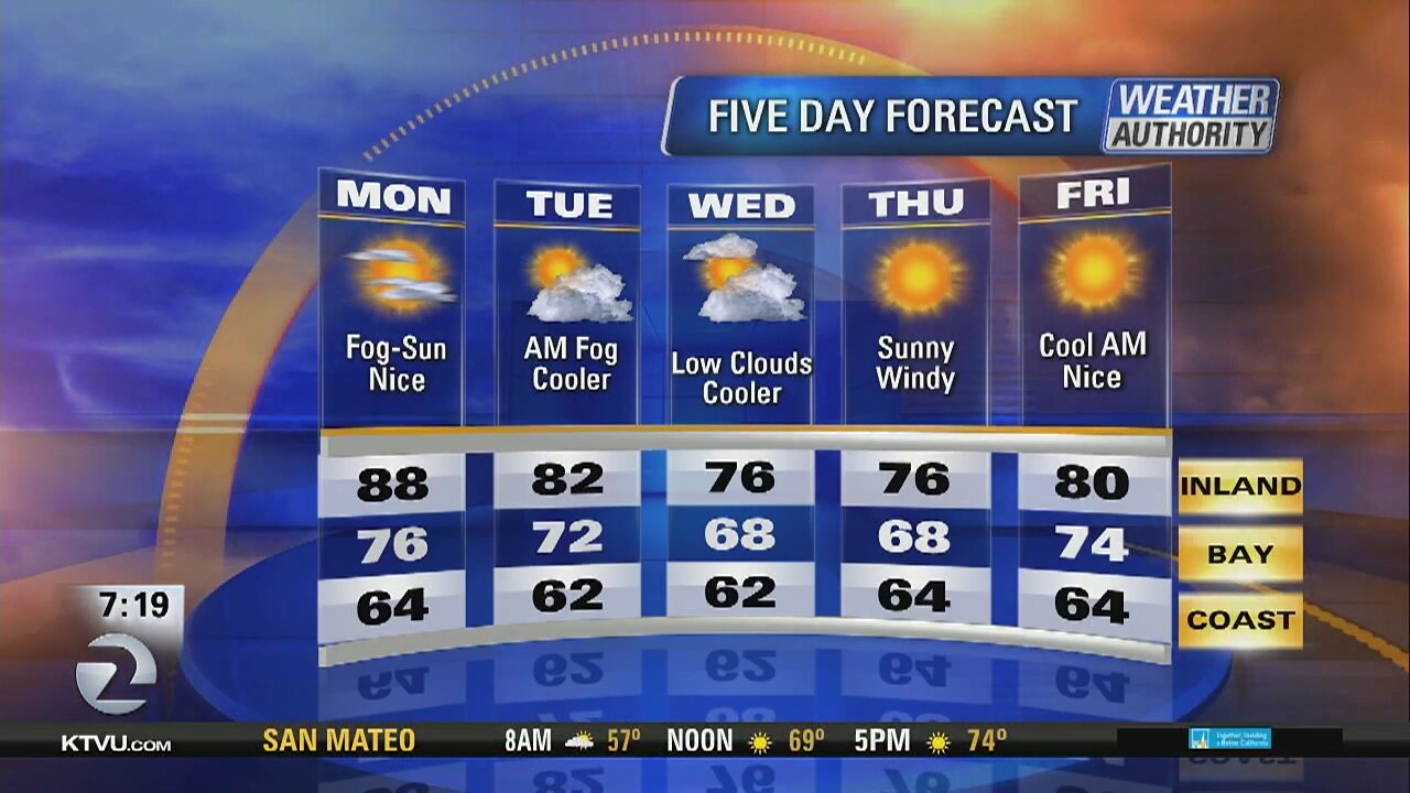 Bay Area Forecast: Mid 80s inland, mid 60s at the coast