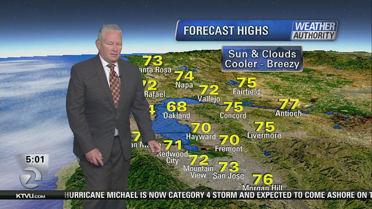KTVU meteorologist Steve Paulson says a cooler system is moving through. Highs in the 70s