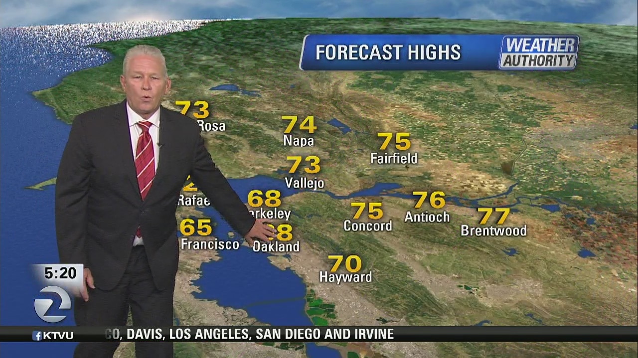 KTVU meteorologist says it will be sunny and it will be warm through Saturday. Temps will be in 60s and 70s