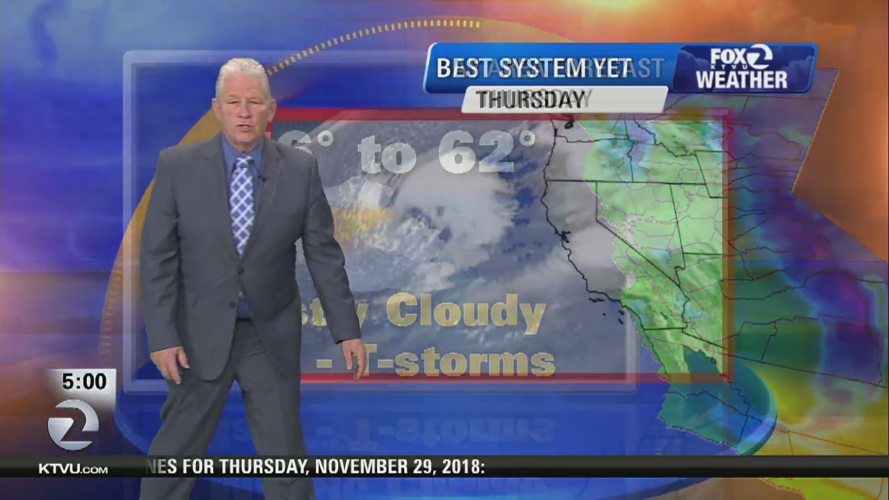 KTVU meteorologist Steve Paulson says today will be rainy and windy with thunderstorms and lightning occurring throughout the region. Temps in the 50s