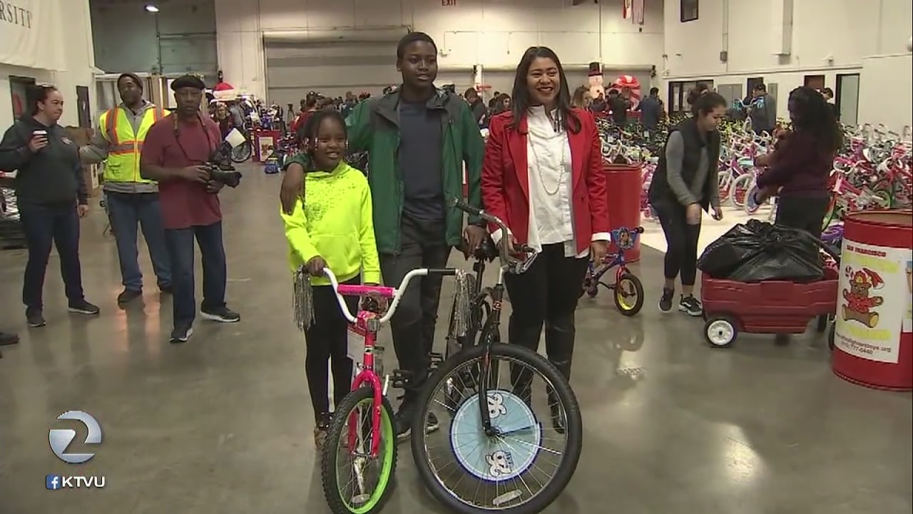 San Francisco warehouse transforms into Santa's workshop. Sara Zendehnam reports