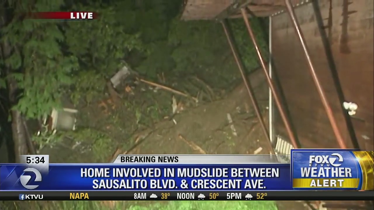 An unstable hillside, soaked with rain, caused a home in Sausalito on Thursday morning to slide about 75 yards into another home across the street. Elissa Harrington reports