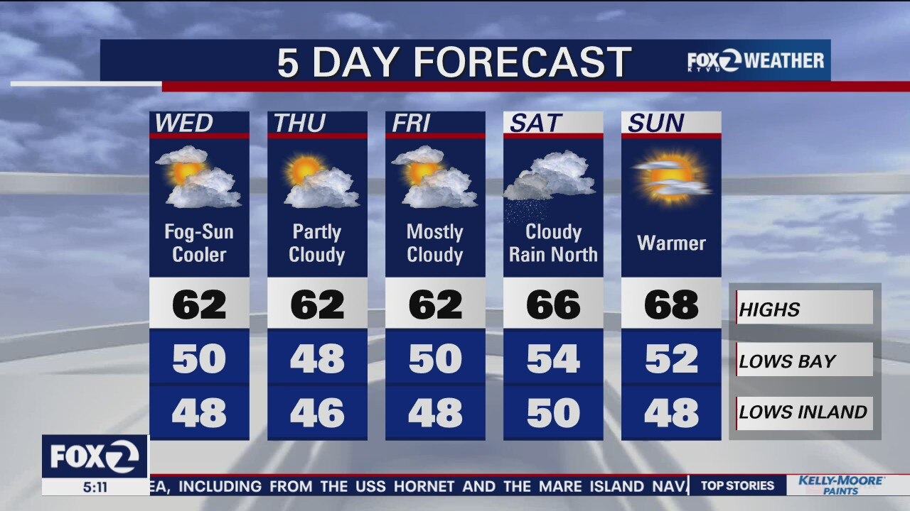 Clouds and sun, temps in 60s