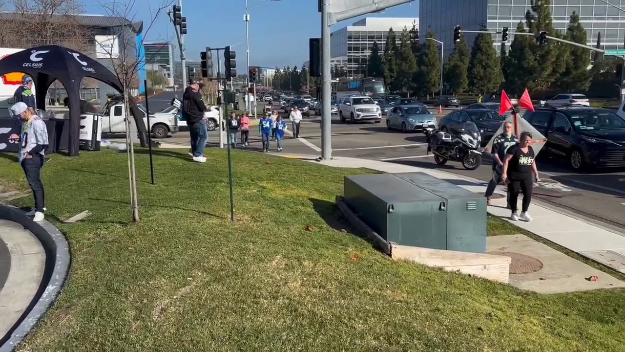 Football fans arrive at Levi's Stadium for Super Bowl LX