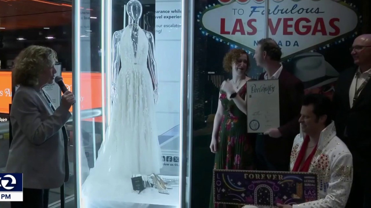 Travelers to Harry Reid Airport in Las Vegas can see the 2025 wedding dress of the year on display. A panel selected the dress from dozens of entries of couples who got married in Clark County in 2025. The woman who wore the dress said she found it in a Beverly Hills shop.