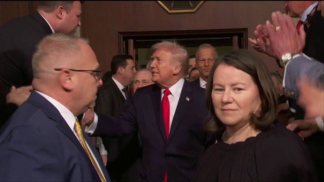 President Donald Trump enters the chambers as he gets ready to deliver his State of the Union address.