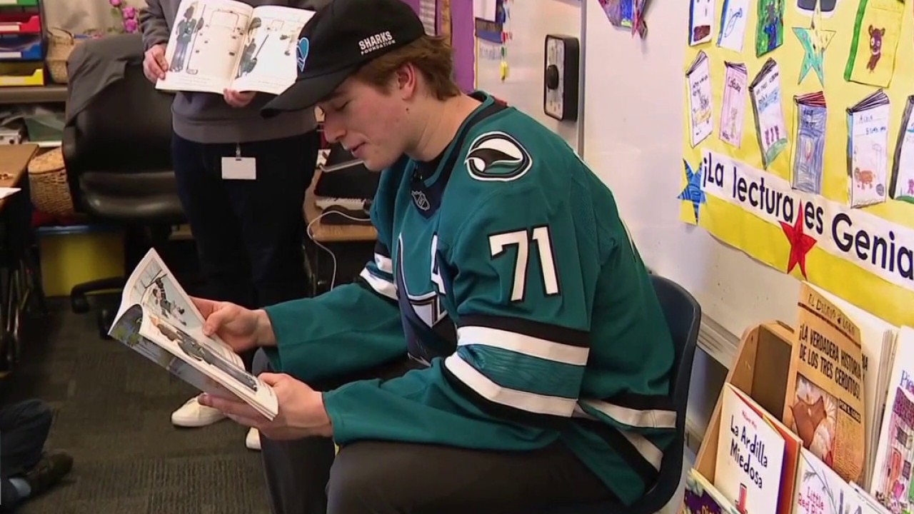 Celebrini, other San Jose Sharks, step off the ice to read to students