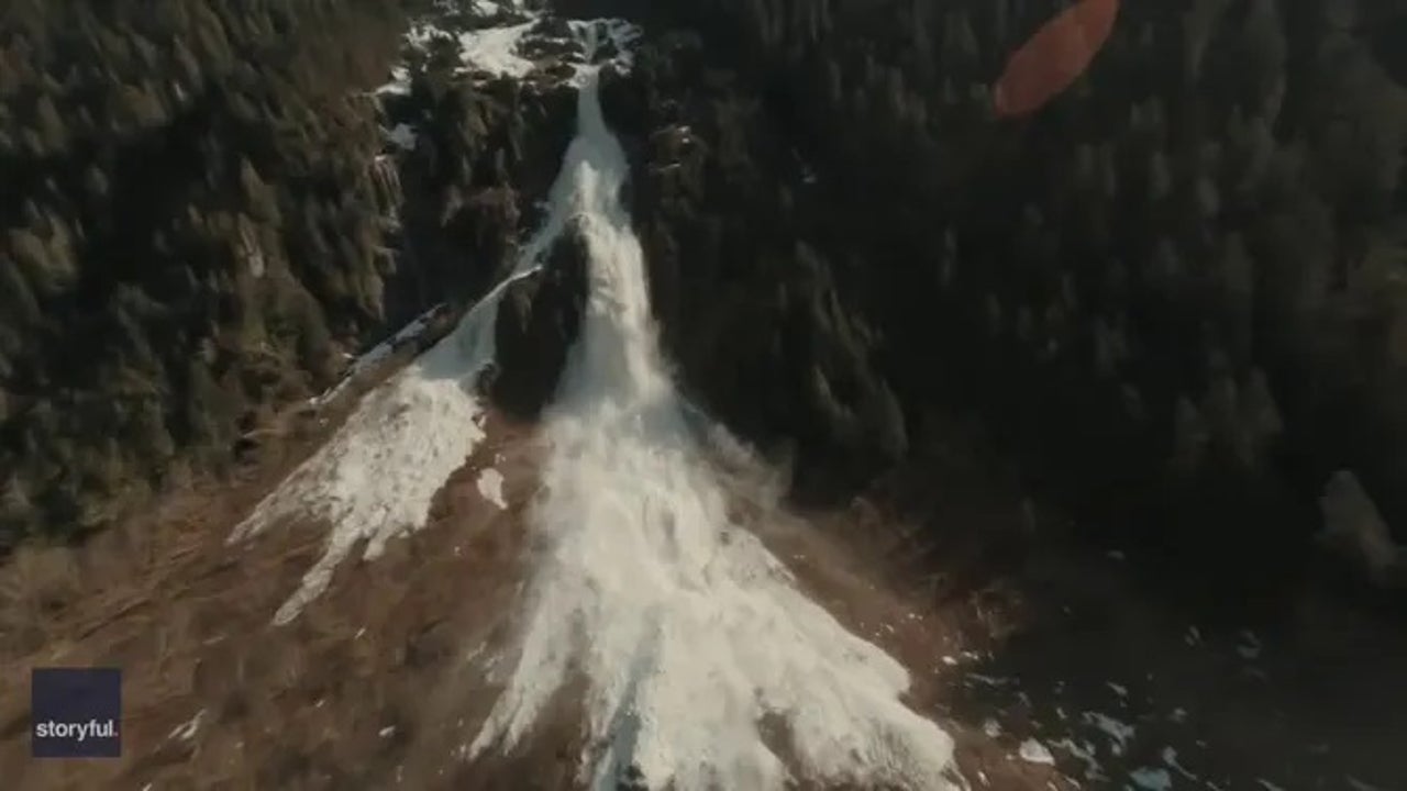 Drone pilot Mactac told Storyful that he noticed the snow starting to sweep down Nahmint Mountain on May 2 when he rushed to get the drone back into the air to capture video of the mesmerizing moment.